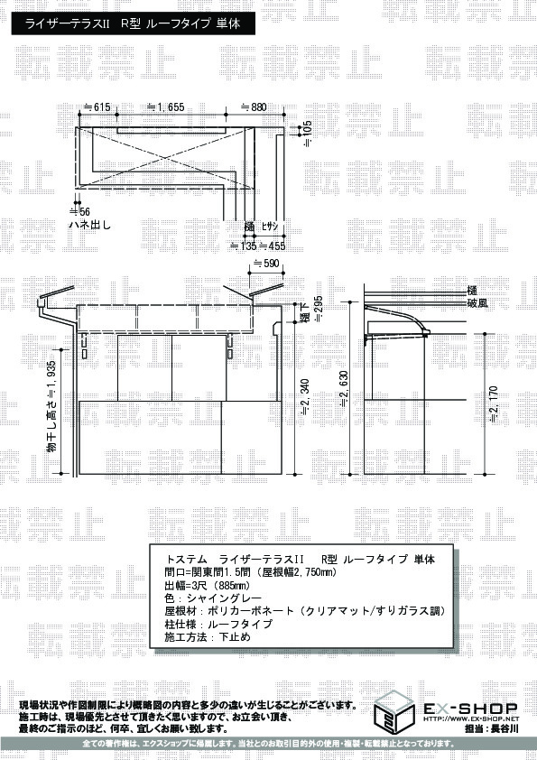 サイズ | 屋根幅 2,750mm 出幅 885mm |