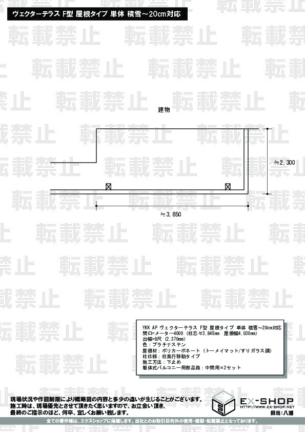 サイズ | 屋根幅 4,030mm 出幅 2,370mm |