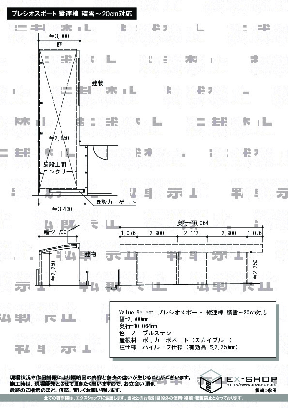 縦連棟タイプの奥行きのあるプレシオスポートが、敷地内に綺麗に納まりましたこと大変嬉しく存じます。また、弊社はネット販売の利点を活かし、お求めやすい価格で、ご要望に出来るだけ近いものをお届けすることを目指しておりますので、このようなお言葉を頂き、大変光栄に存じます。お気に召して頂き、永く愛用して頂けましたら幸いでございます!これからも、お客様のご期待を裏切らないよう精進して参りますので、また機会がございましたら、ぜひエクスショップをご利用頂けますよう、宜しくお願い致します。