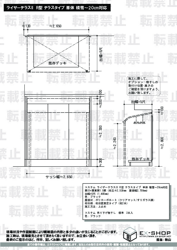 サイズ | 屋根幅 2,750mm 出幅 1,485mm |