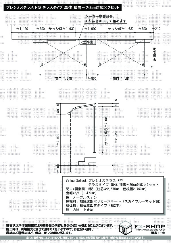 | サイズ | 屋根幅 2,760mm 出幅 1,470mm |