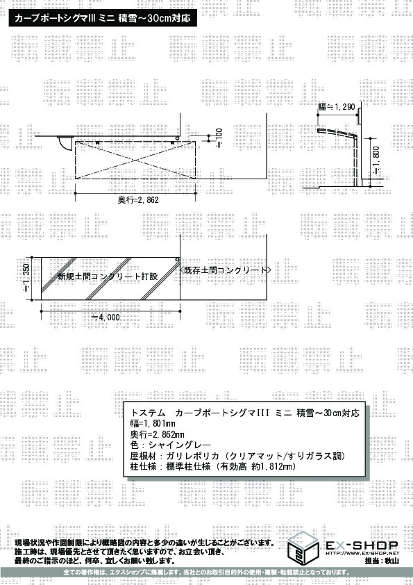 この度施工頂きました、カーブポートシグマIII ミニに「満足」とのお声、大変嬉しく存じます。ご自宅の白い外壁に、シャイングレーの高級感あるフレームがぴったりマッチして、大変素敵なお仕上がりでございますね。施工時におきまして、ご説明不足な点がございましたこと、謹んでお詫び申し上げます。今後はお客様に十分納得して頂けるよう、細かなご説明を心掛けて参りますので、また機会がございましたら、是非エクスショップをご利用頂けますよう、宜しくお願い致します。