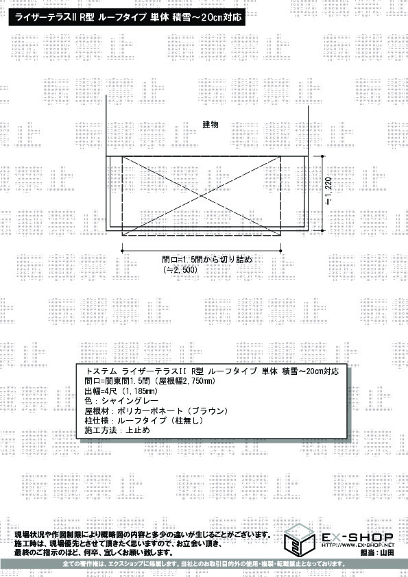 サイズ | 屋根幅 2,750mm 出幅 1,185mm |