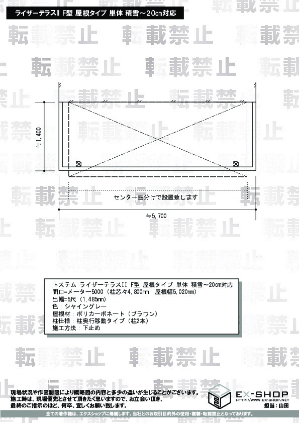 | サイズ | 屋根幅 5,020mm 出幅 1,485mm |