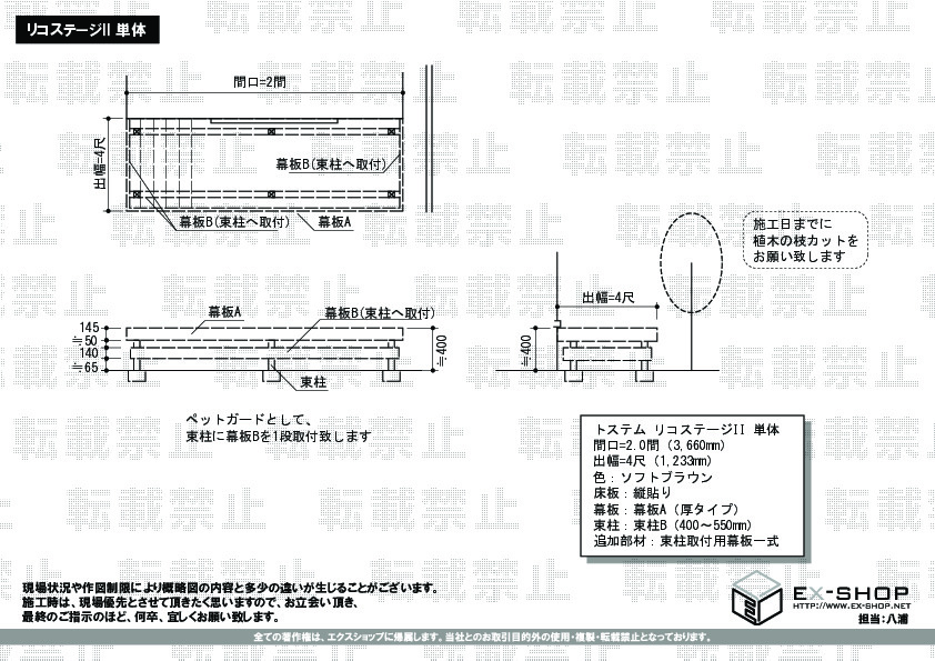 明るいお色のリコステージIIが、お客様の敷地に綺麗に納まりましたこと、スタッフ一同大変嬉しく存じます。ご家族皆様でおくつろぎ頂けるのに十分な大きさがあり、人工木とは思えない肌触りと香りをお楽しみ頂けるものと存じます。これからも、お客様のご期待を裏切らないよう精進して参りますので、また機会がございましたら、ぜひエクスショップをご利用頂けますよう、宜しくお願い致します。