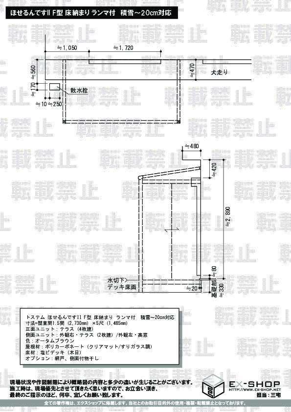 | サイズ | 間口 2,730mm 出幅 1,485mm |