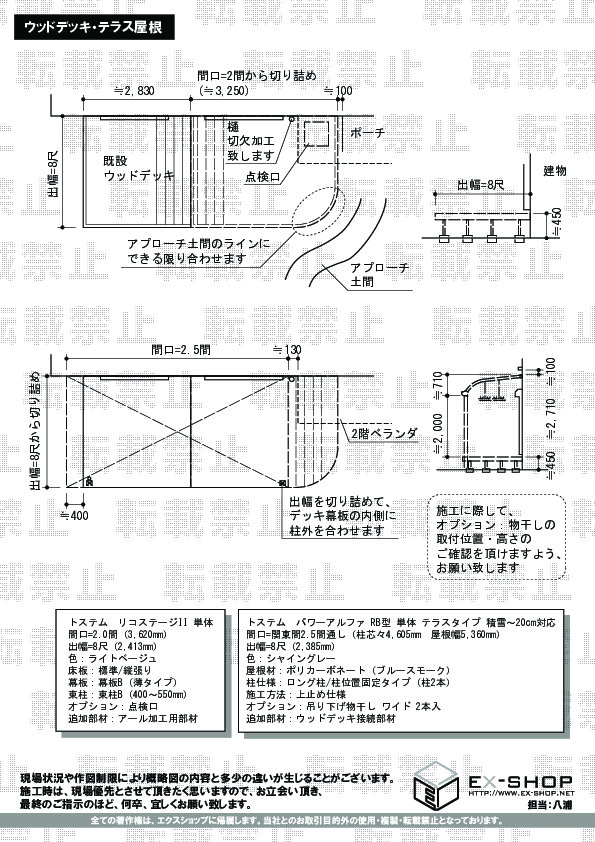今回の設置にあたり複数の業者さんに事前現地調査・見積もりをお願いしましたが対応や価格の面でエクスショップさんが一番良かったと思います。既存ウッドデッキへの増設でしたので、現地調査では当方で気づかない点など的確なアドバイスを頂きたいへん参考になりました。また施工前のメールでのやり取りも丁寧で不明な点などは施工前にすべて払拭することができました。施工についてはメーカー責任施工でお願いしましたので安心してお任せできました。職人さんには丸3日かけて丁寧に施工していただき非常に感謝しておりますし、技術力も高かったと思います。自分の想像以上に広いウッドデッキと大きなテラスができとても満足しています。ありがとうございました。