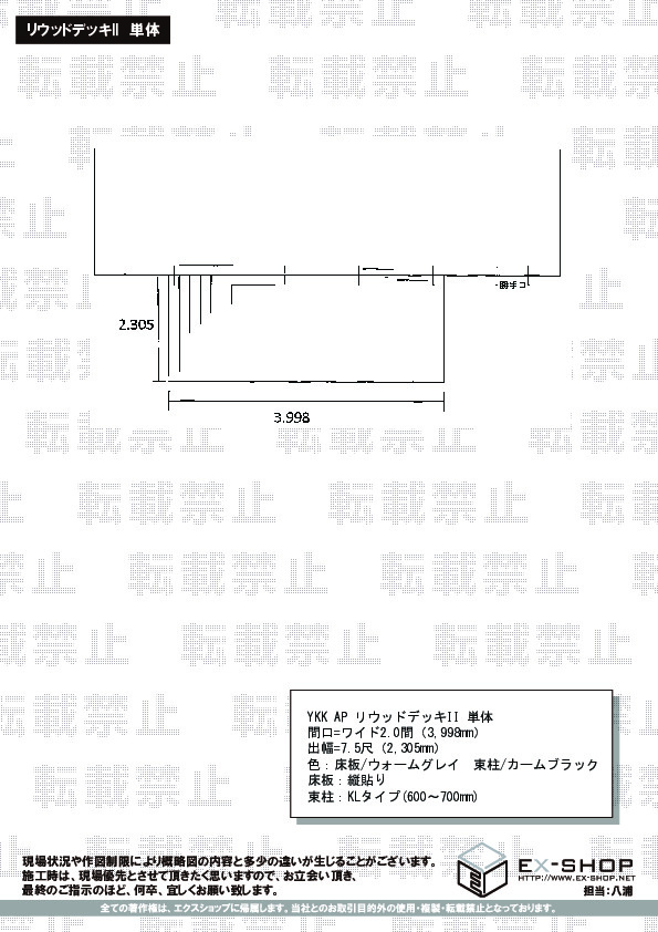 | サイズ | 間口 3,998mm 出幅 2,305mm |