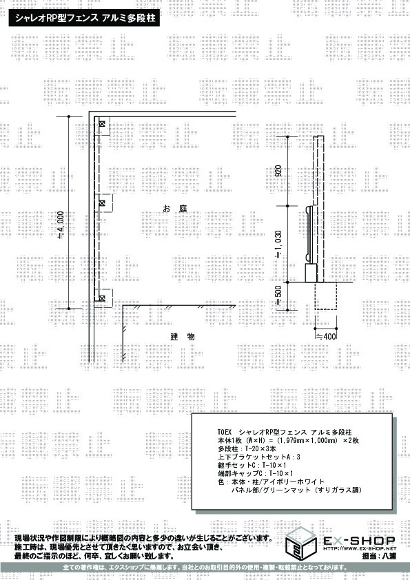 シャレオRP型フェンスの施工をご依頼頂きまして、誠に有難うございます。採光性に優れ、明るさを損なうことなく、お客様のプライバシーをお守りするフェンスでございます。お気に召して頂き、永くご愛用頂けましたら、幸いでございます。担当致しました施工士に、お褒めのお言葉を頂き、誠に有難うございます。施工士にとりましても、お客様のお喜びのお言葉が何より励みとなっております。今後益々精進して参りますので、また機会がございましたら、ぜひ弊社をご用命くださいますよう、お願い申し上げます。