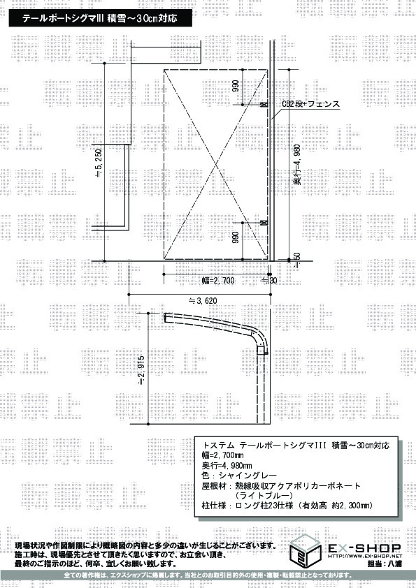 | 屋根高等 | ロング柱23仕様(有効高 約2,300mm) |