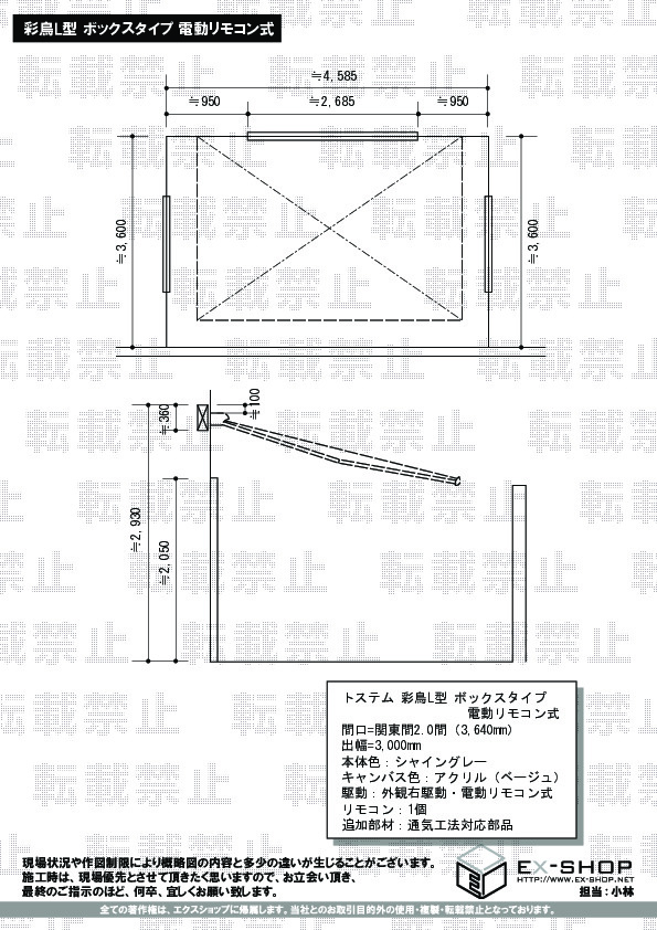 | サイズ | 間口 3,640mm 出幅 3,000mm |