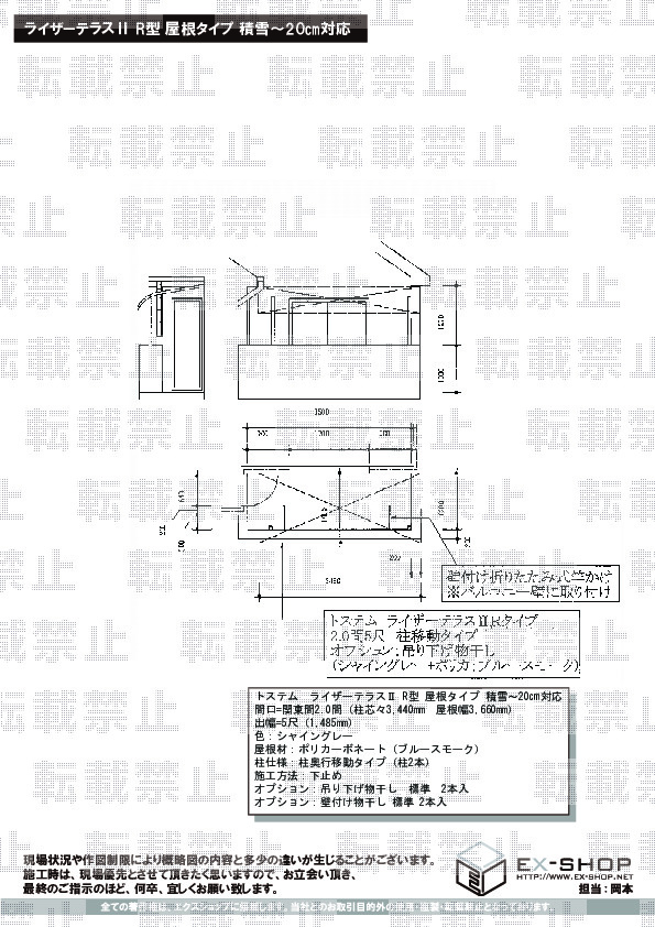 サイズ | 屋根幅 3,660mm 出幅 1,485mm |