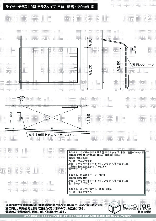 サイズ | 屋根幅 3,660mm 出幅 1,485mm |