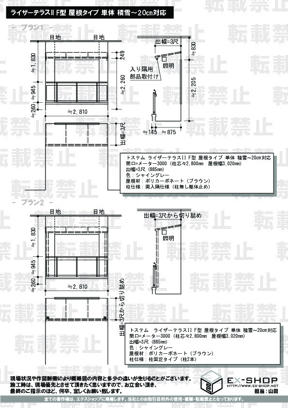 | サイズ | 屋根幅 3,020mm 出幅 885mm |