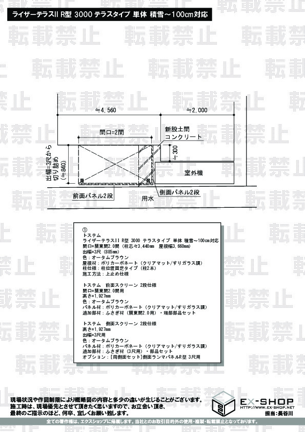 | サイズ | 屋根幅 3,660mm 出幅 885mm |