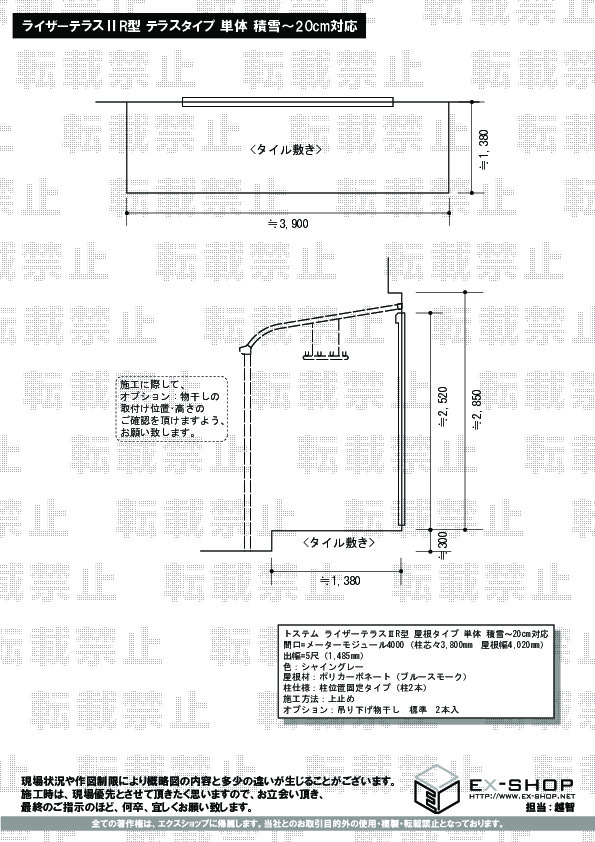 サイズ | 屋根幅 4,020mm 出幅 1,485mm |