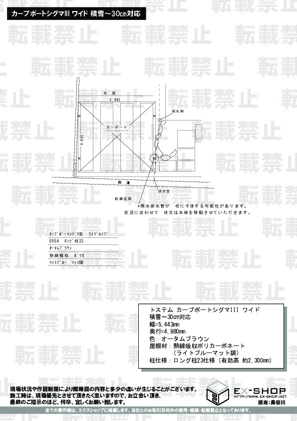 顔の見えないネット販売で、ご不安がおありだったと存じますが、最後まで弊社を信頼頂き、誠に有り難うございました。カーブポートシグマV ワイドが綺麗に納まりましたこと、大変嬉しく存じます。屋根材の熱線吸収ポリカーボネート(ライトブルーマット調)は美しいブルー色を保ちながら、強い日差しも吸収カットし、大切なお車をお守り致しますので、安心してご利用頂けることと存じます。「本当に満足」とのお言葉を頂戴し、満足頂けるよう日々企業努力を重ねている私どもにとりまして、何よりの励みとなります。今後も迅速かつ丁寧な対応を心掛けて参りますので、また機会がございましたらエクスショップをご用命頂きますよう、宜しくお願い申し上げます。