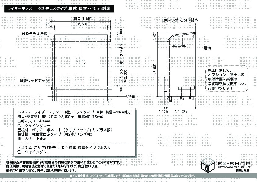 サイズ | 屋根幅 2,750mm 出幅 1,485mm |