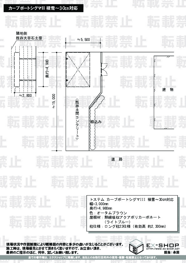 サイズ | 幅 3,000mm 奥行 4,980mm |