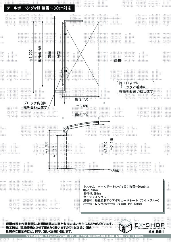 | 屋根高等 | ロング柱23仕様(有効高 約2,300mm) |
