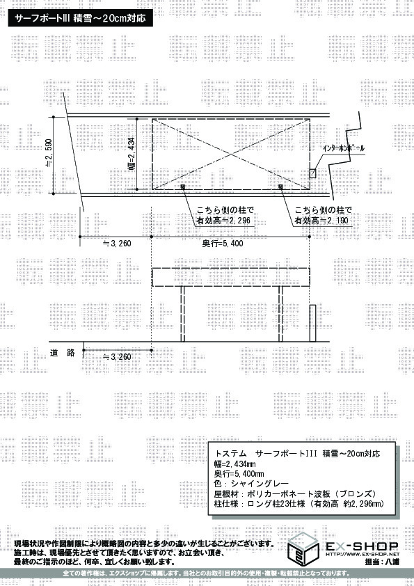 | 屋根高等 | ロング柱23仕様(有効高 約2,296mm) |