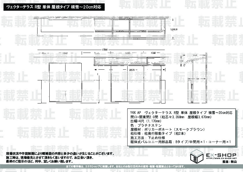 | サイズ | 屋根幅 3,670mm 出幅 1,170mm |