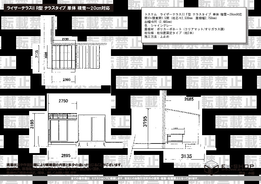 | サイズ | 屋根幅 2,750mm 出幅 2,685mm |