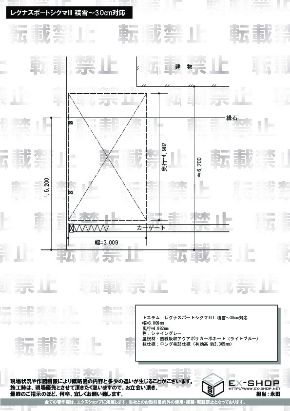 | 屋根高等 | ロング柱23仕様(有効高 約2,305mm) |