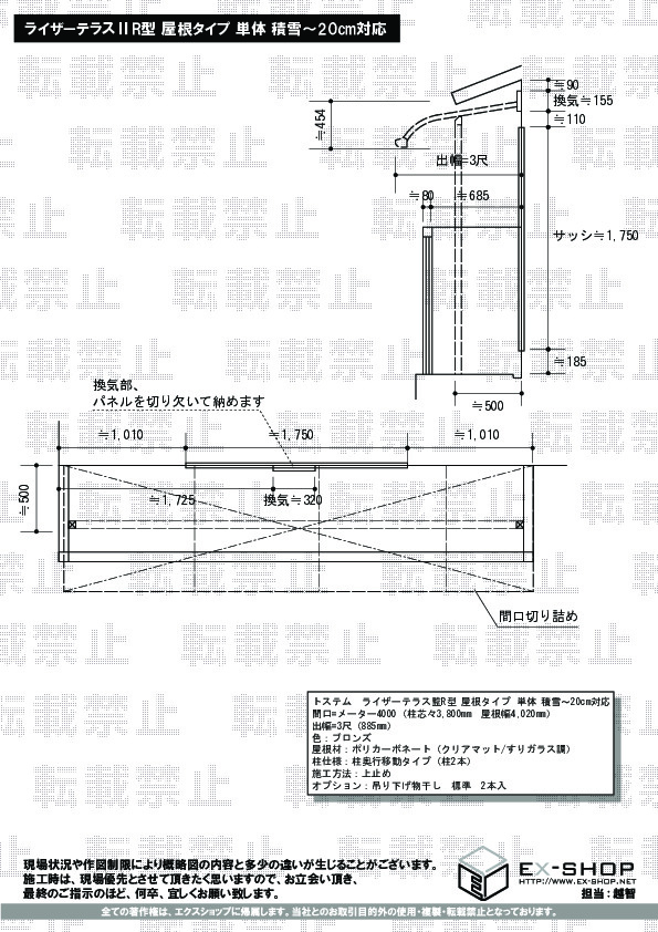 | サイズ | 屋根幅 4,020mm 出幅 885mm |
