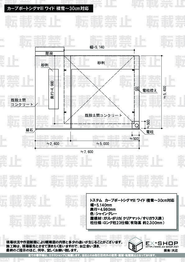 | 屋根高等 | ロング柱23仕様(有効高 約2,300mm) |