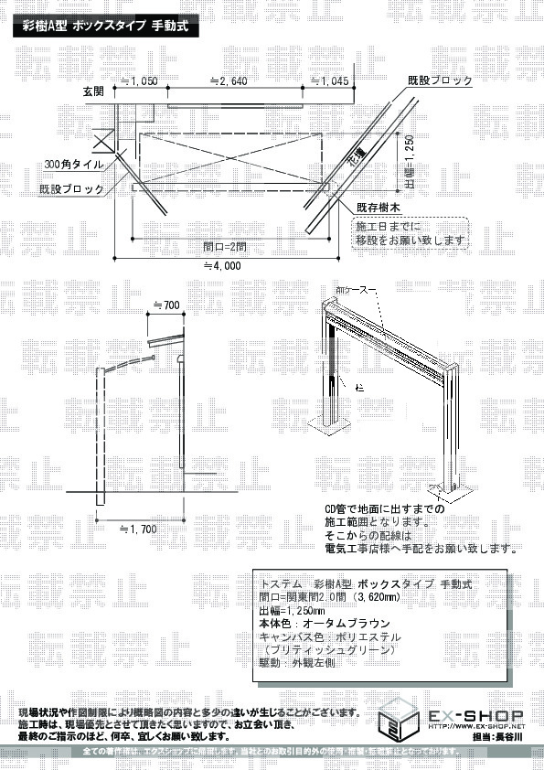サイズ | 間口 3,620mm 出幅 1,250mm |