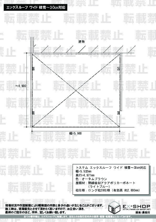 この度はエクスショップをご利用頂き、誠に有り難うございます。エックスルーフ ワイドは、存在感のあるデザインですが、ご自宅の雰囲気を損なうことのないお仕上がりでございますね。今後も、お客様の立場に立ち、きめ細かい対応を心掛けて参ります。またエクスショップをご利用頂ける日を心よりお待ちしております。