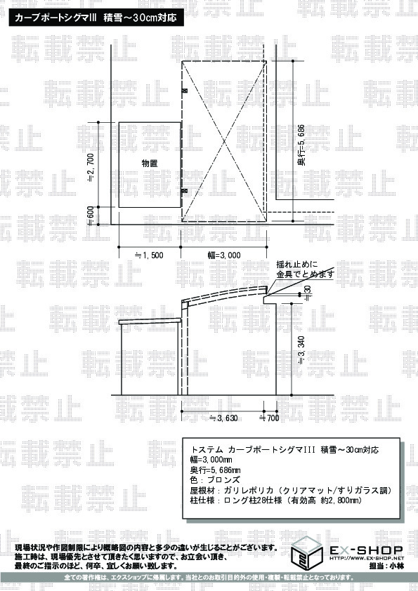 | 屋根高等 | ロング柱28仕様(有効高 約2,800mm) |
