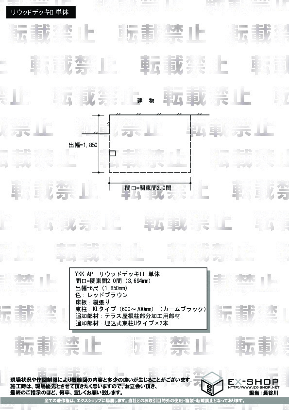| サイズ | 間口 3,694mm 出幅 1,850mm |