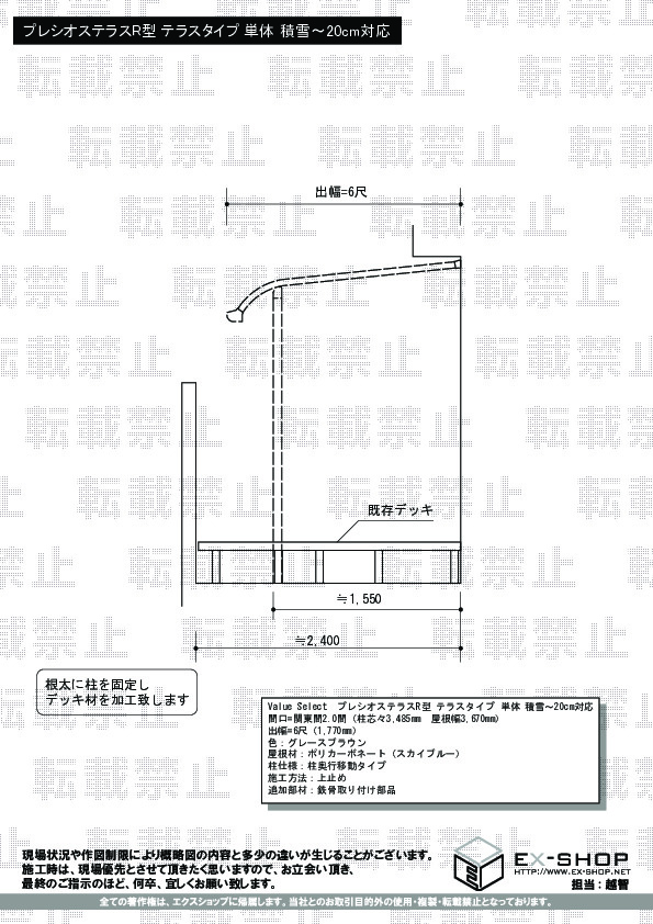 サイズ | 屋根幅 3,670mm 出幅 1,770mm |