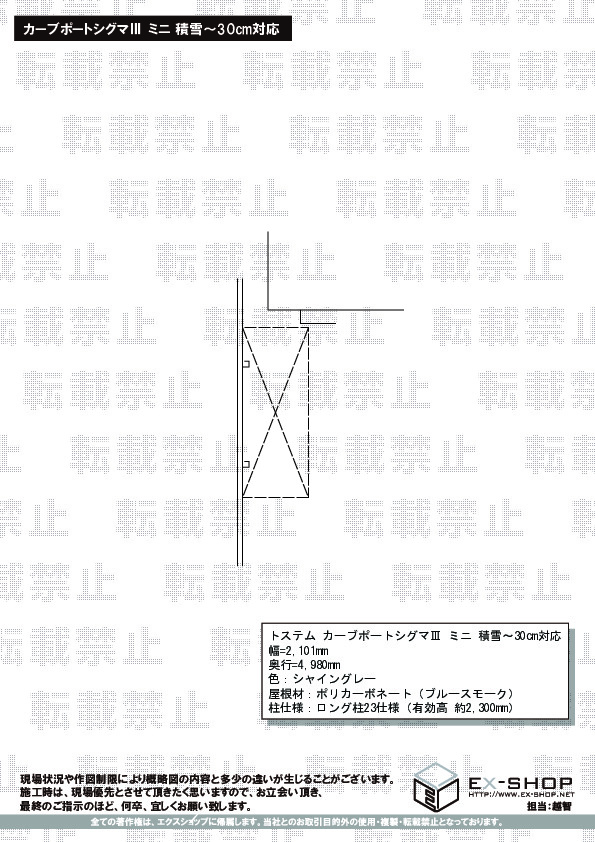 | 屋根高等 | ロング柱23仕様(有効高 約2,300mm) |