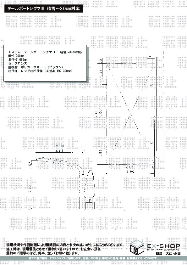 | 屋根高等 | ロング柱23仕様(有効高 約2,300mm) |