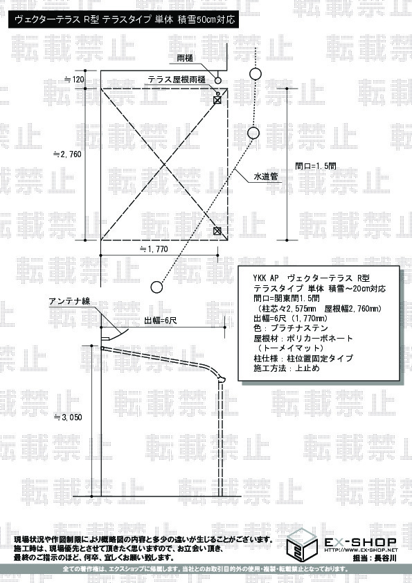 | サイズ | 屋根幅 2,760mm 出幅 1,770mm |