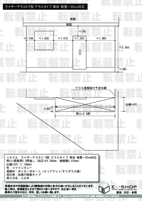 サイズ | 屋根幅 4,570mm 出幅 1,185mm |