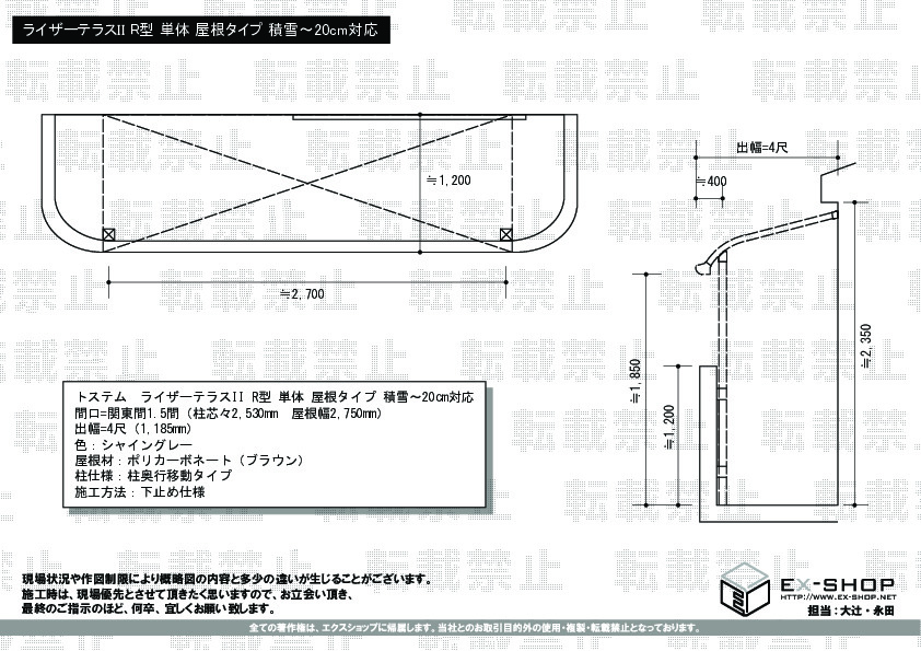 サイズ | 屋根幅 2,750mm 出幅 1,185mm |
