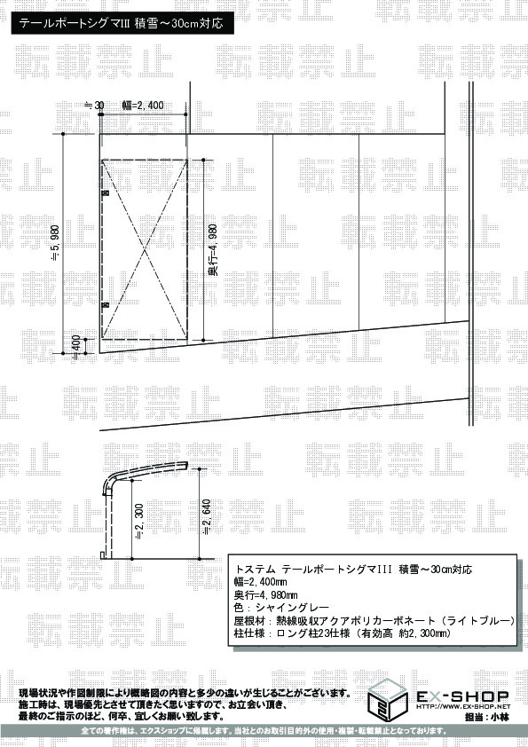 屋根高等 | ロング柱23仕様(有効高 約2,300mm) |