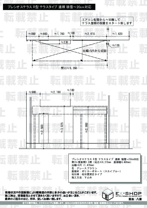 サイズ | 屋根幅 6,400mm 出幅 1,470mm |