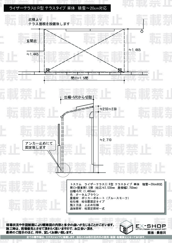 サイズ | 屋根幅 2,750mm 出幅 1,485mm |