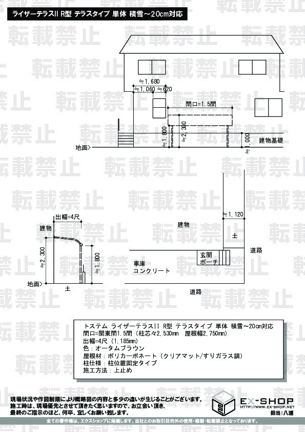 サイズ | 屋根幅 2,750mm 出幅 1,185mm |