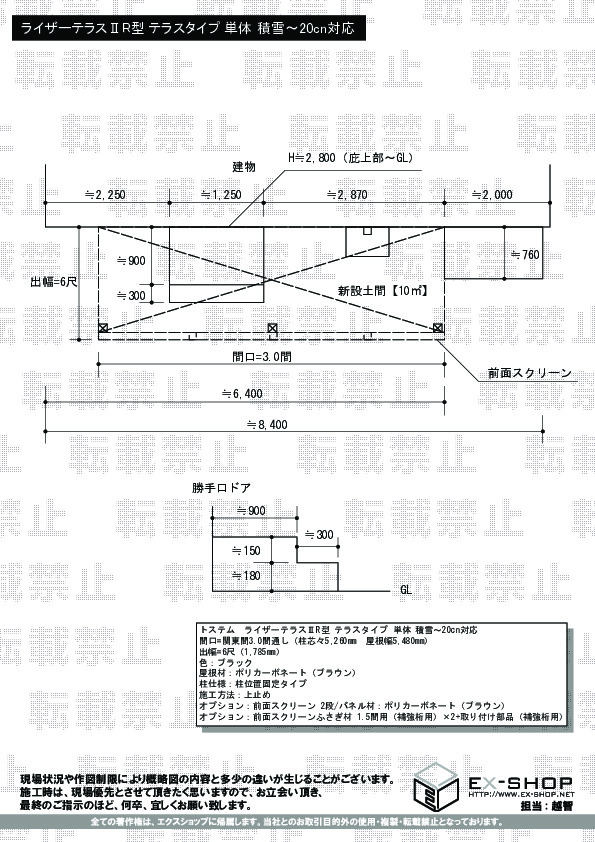 サイズ | 屋根幅 5,480mm 出幅 1,785mm |