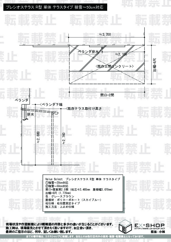 サイズ | 屋根幅 3,670mm 出幅 1,770mm |