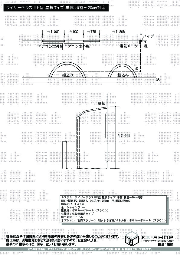 サイズ | 屋根幅 4,570mm 出幅 1,485mm |