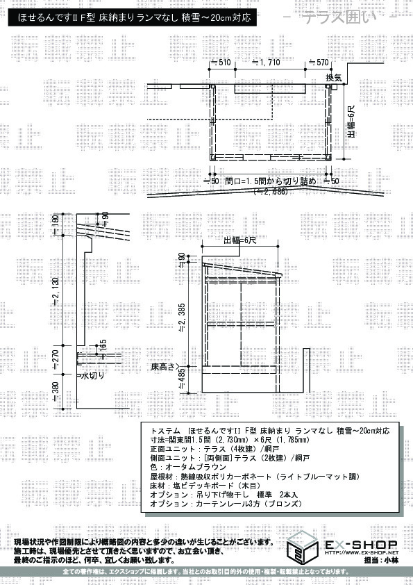 | サイズ | 間口 2,730mm 出幅 1,785mm |