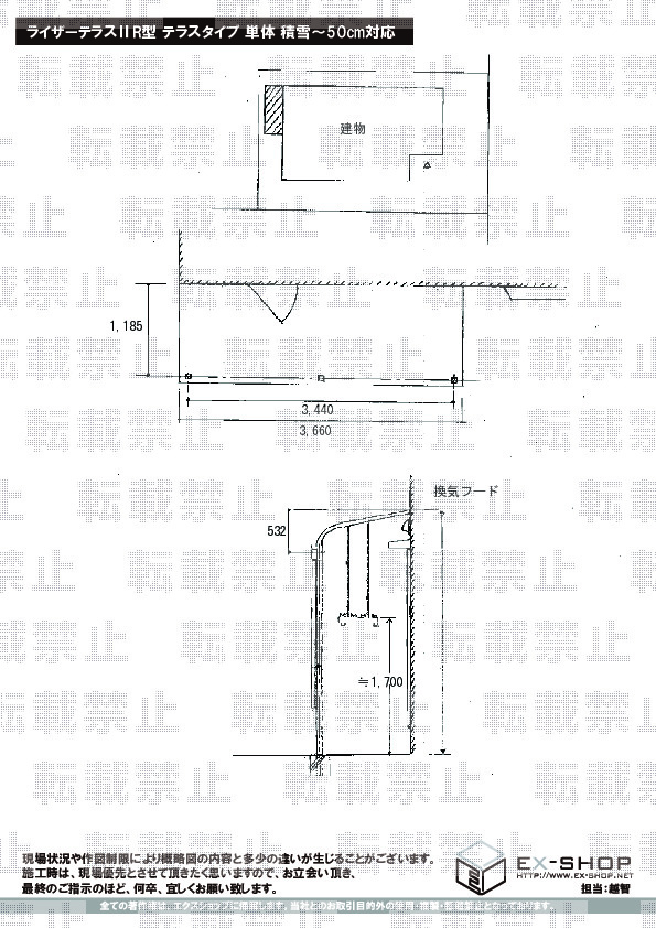 サイズ | 屋根幅 3,660mm 出幅 1,185mm |