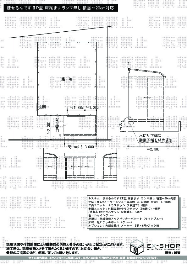 | サイズ | 間口 3,000mm 出幅 1,785mm |